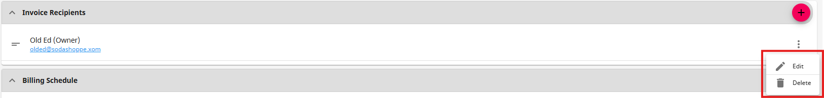 *Note* Once the setup is complete, you have the option to either "Edit" or "Delete" the invoice recipient after selecting the