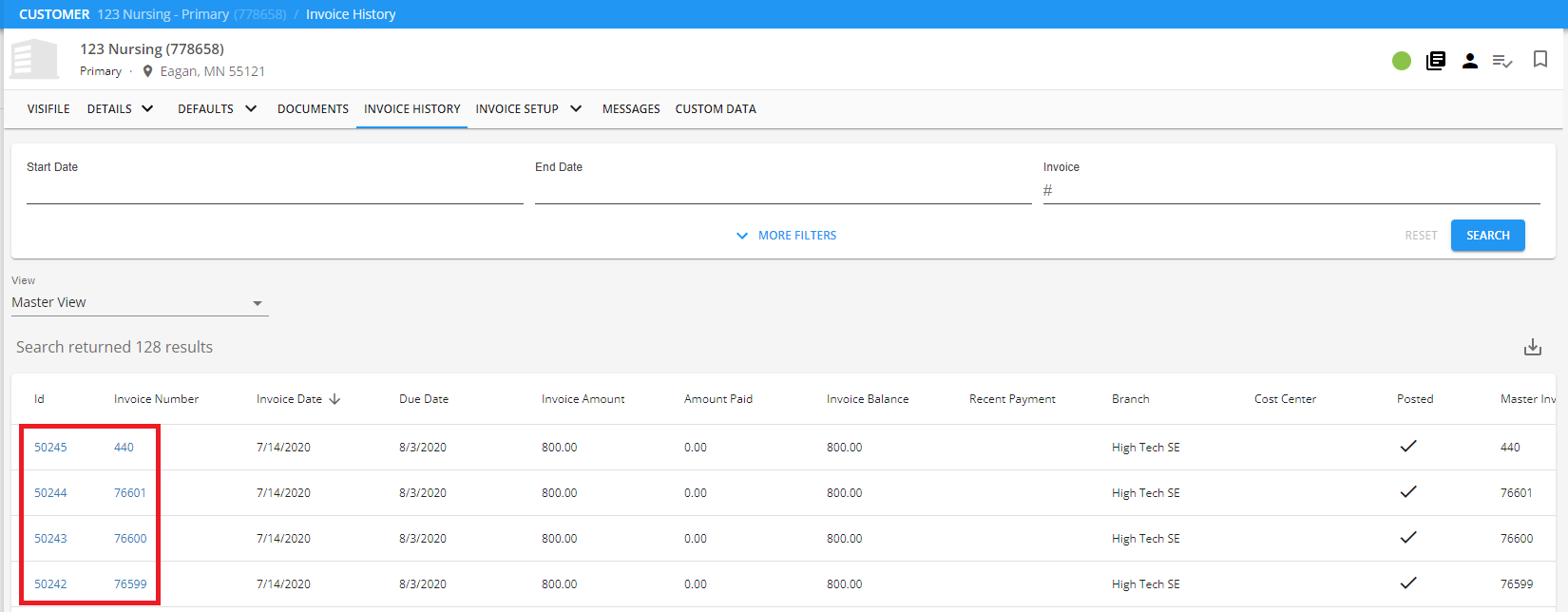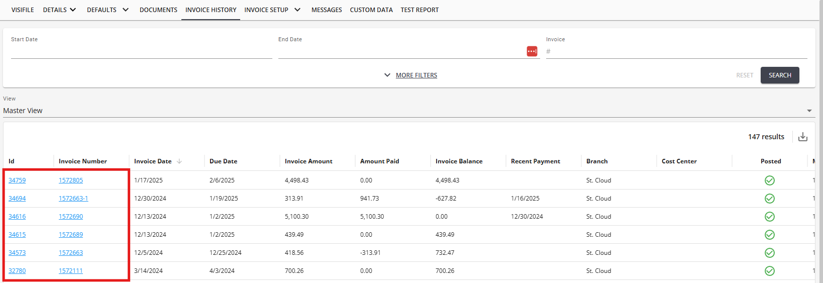 *Note* Invoices can also be previewed within the "Invoice History" tab of the customer record.