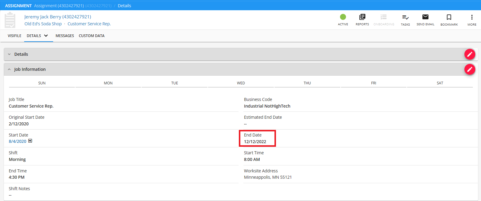 If you don't end your assignments, your records will quickly become out of date. Out of date records can cause issues where recruiters and/or employees may be unsure whether they are still working for a particular assignment. It can also lead to issues when employees fill out unemployment claims, etc.