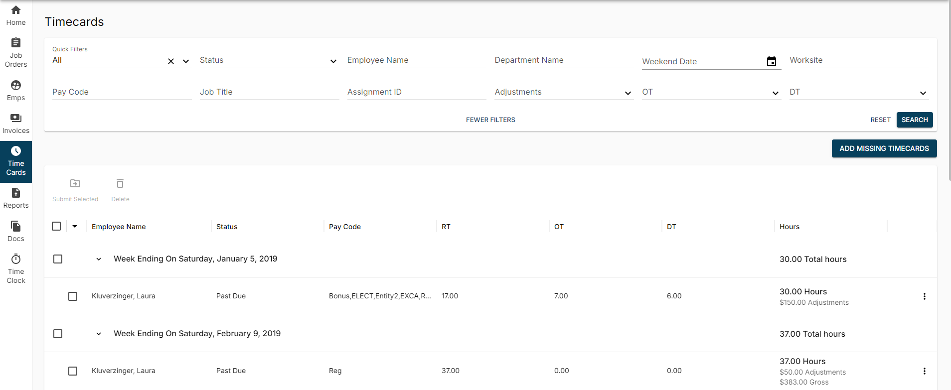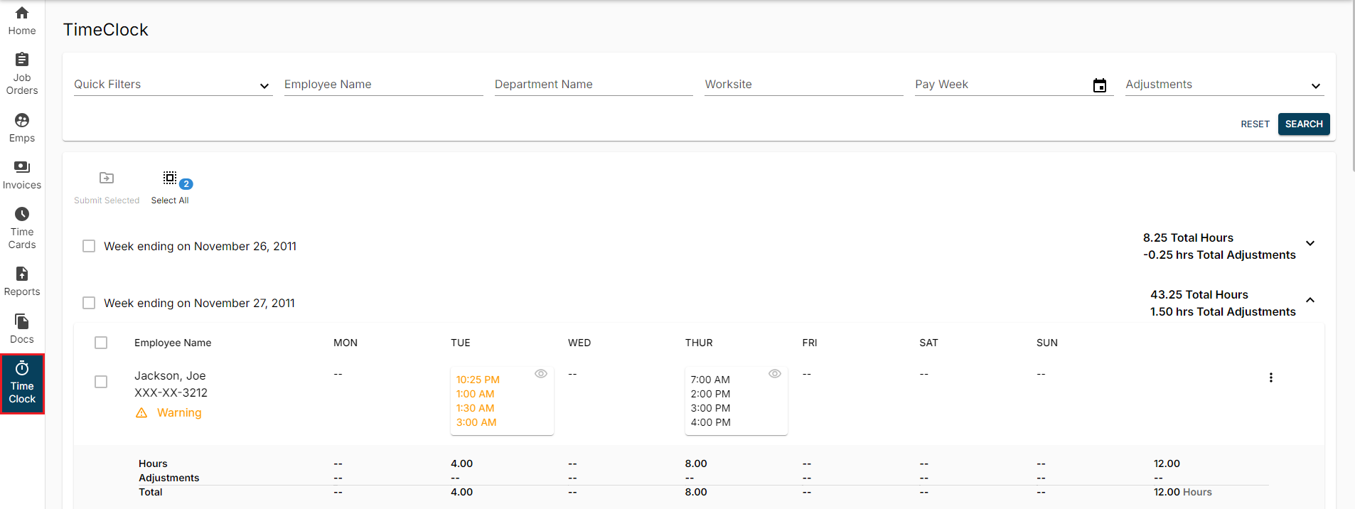 TimeClock Timecards