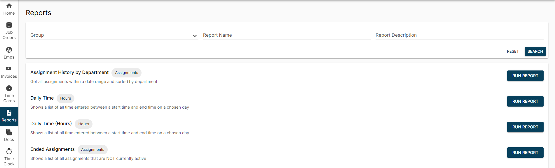 - Approve or reject timecards