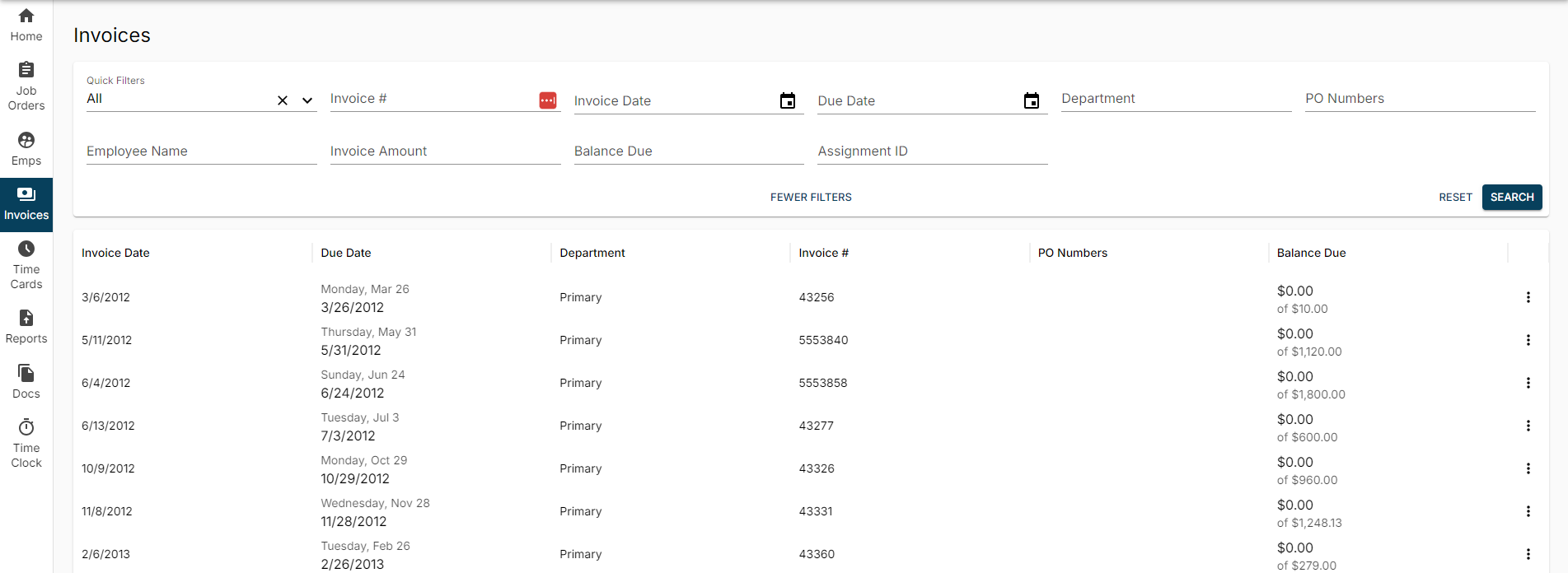 - Search for invoices