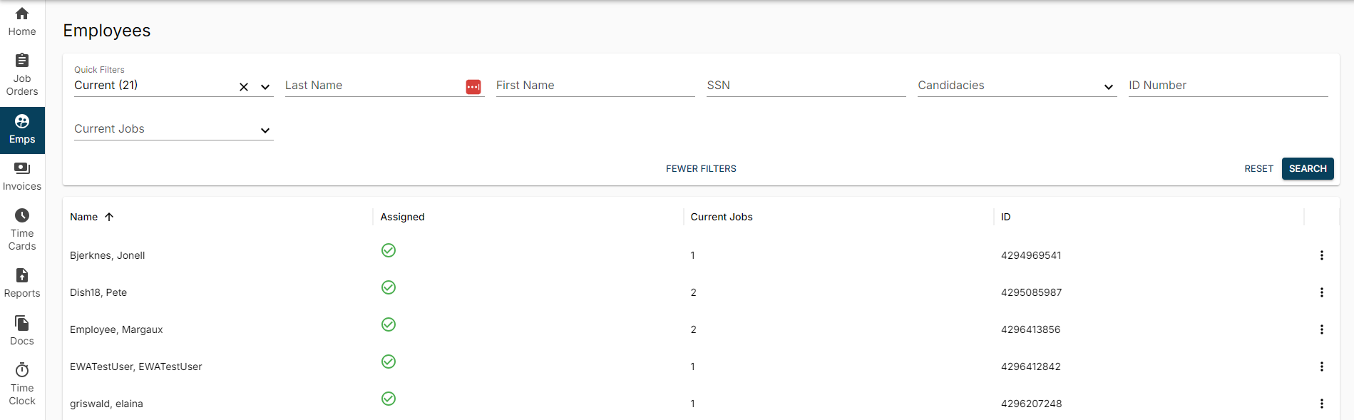 With access to the Emps (Employees) tab in WebCenter, you will be able to do the following: