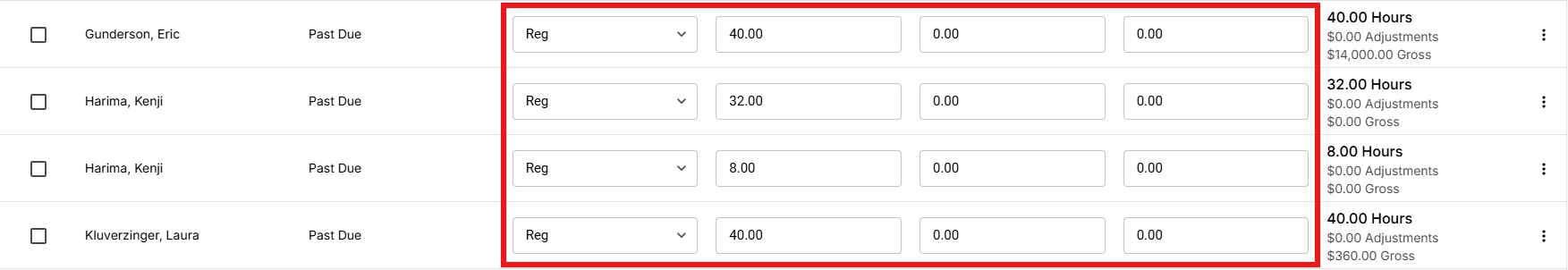 - Past Due - Shows all late timecards that have not been completed (paid) yet.