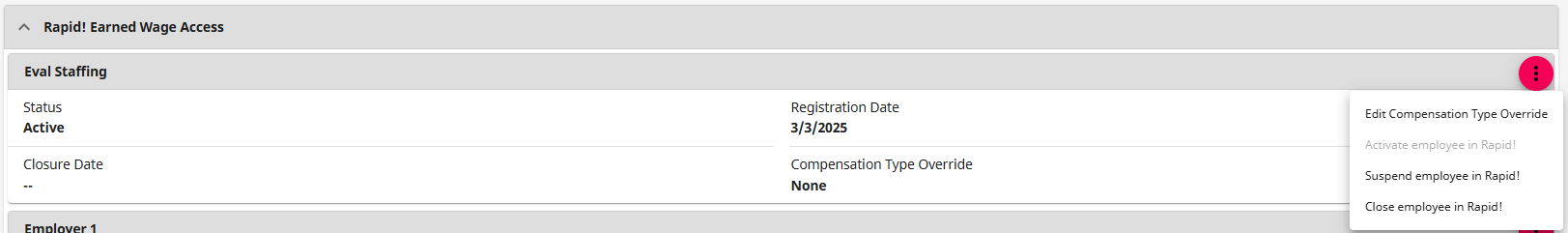 - Close employee in Rapid!: If previously active or suspended, you can close the employee from Rapid! EWA.