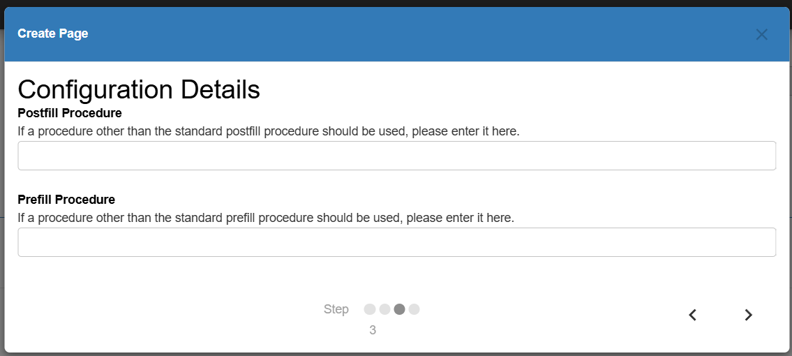 Within the "Configuration Details" section, leave both procedure options blank and select the ">" arrow to continue: