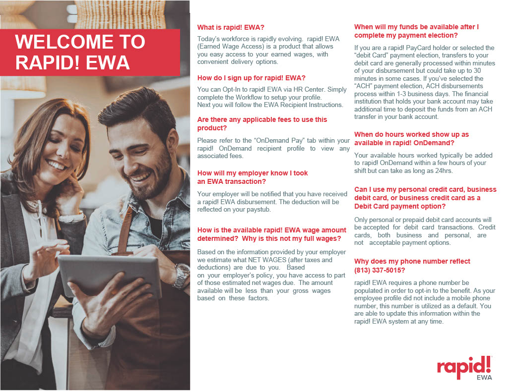 The below FAQ includes important information for employees utilizing Rapid! EWA.